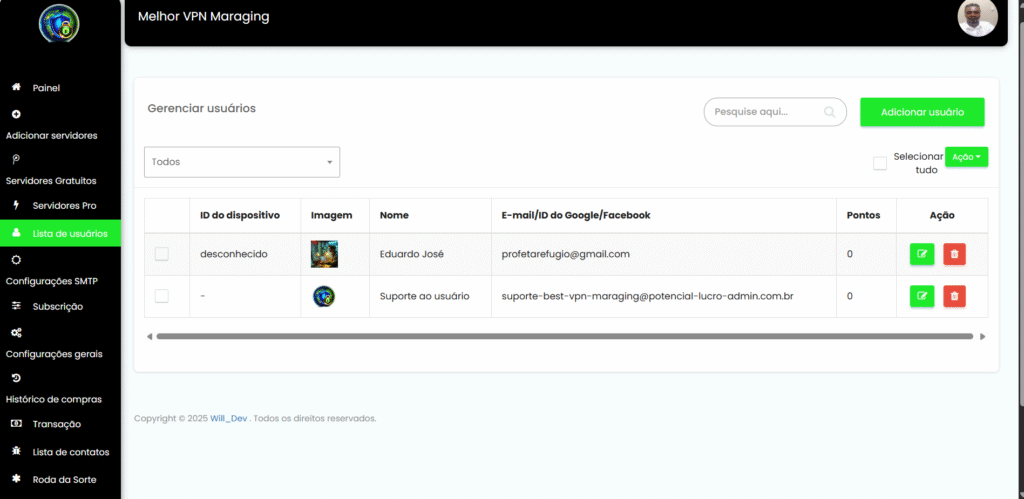 Painel de controle intuitivo: Gerencie servidores, usuários e planos diretamente pelo painel.